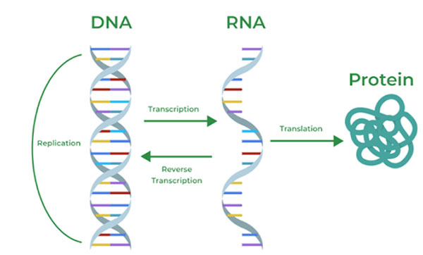 এই পদ্ধতিতে আসলে আরএনএ-কে সিকোয়েন্সিং (RNA sequencing) করা হয়। জিন থেকে প্রোটিন, এই পথে যাওয়ার একটা মধ্যবর্তী ধাপে আরএনএ তৈরি হয় — সেটাও একটা অক্ষরের সারি [2]।